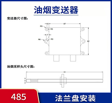 采用管道式安裝,可直接安裝于油煙排出管道,采集結構采用耐高溫高濕涂層,可長期工作于80度以上的油煙環境。