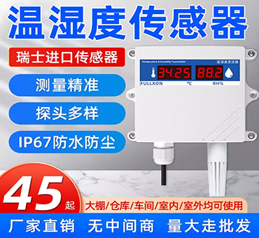 該傳感器帶有數碼管顯示功能,可實時顯示當前溫濕度,采用壁掛防水殼,多用于室外及現場環境惡劣的場合。
