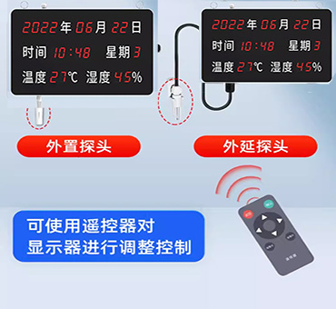 ▇采用大尺寸面板,紅光高亮數碼管,白天黑夜乃至強光下都可清晰顯示。萬年歷款可視距離>15m ,溫濕度款可視距離>35m。