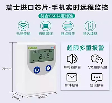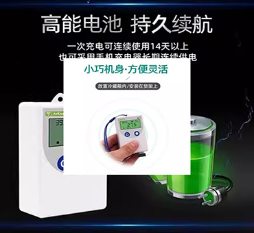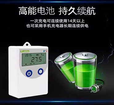 設備內置大容量鋰電池也外接電源供電,內置蜂鳴器,具有超高低溫報警的功能,溫濕度超限微信會實時推送。