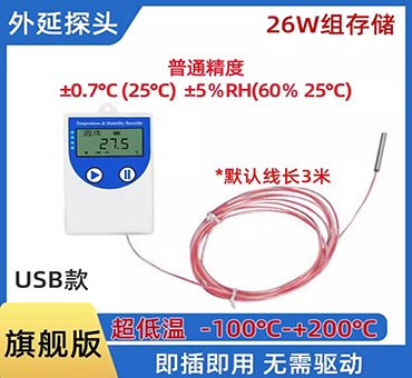 USB超高低溫單溫度記錄儀,主要用于記錄食品、醫藥品、化學用品等產品在存儲和運輸過程中的溫濕度數據記錄,還可應用于冷藏集裝箱、冷藏車、冷藏包、冷庫、實驗室等。