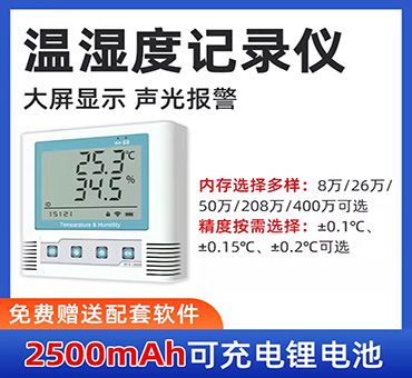 帶超大屏幕液晶顯示的USB單溫度記錄儀,主要用于監測記錄食品、醫藥品、化學用品等產品在存儲和運輸過程中的溫濕度數據。