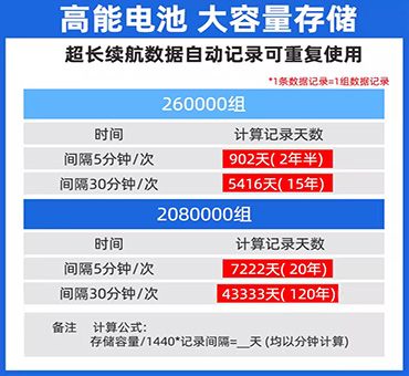 內置鋰電池,一次充電可以連續使用一年以上,內置蜂鳴器使其具有報警功能,同時報警也可以被記錄與導出。